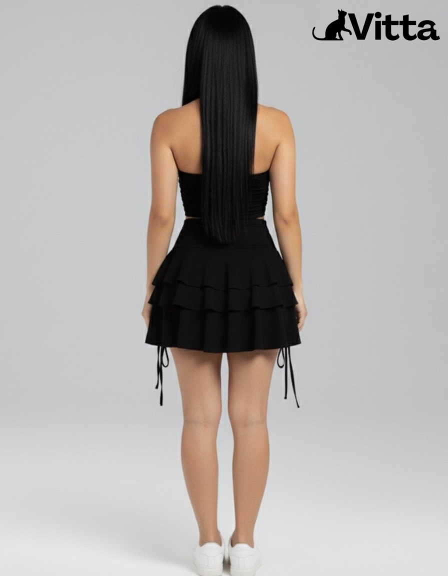 O Conjunto Kelly foi criado para realçar o melhor de você com um toque de elegância e liberdade. O cropped com amarração frontal valoriza o busto e o colo de forma delicada, enquanto a saia com babados traz movimento e um ar jovial que combina com qualquer ocasião. É a escolha perfeita para quem ama se sentir linda sem abrir mão do conforto e da praticidade no dia a dia.